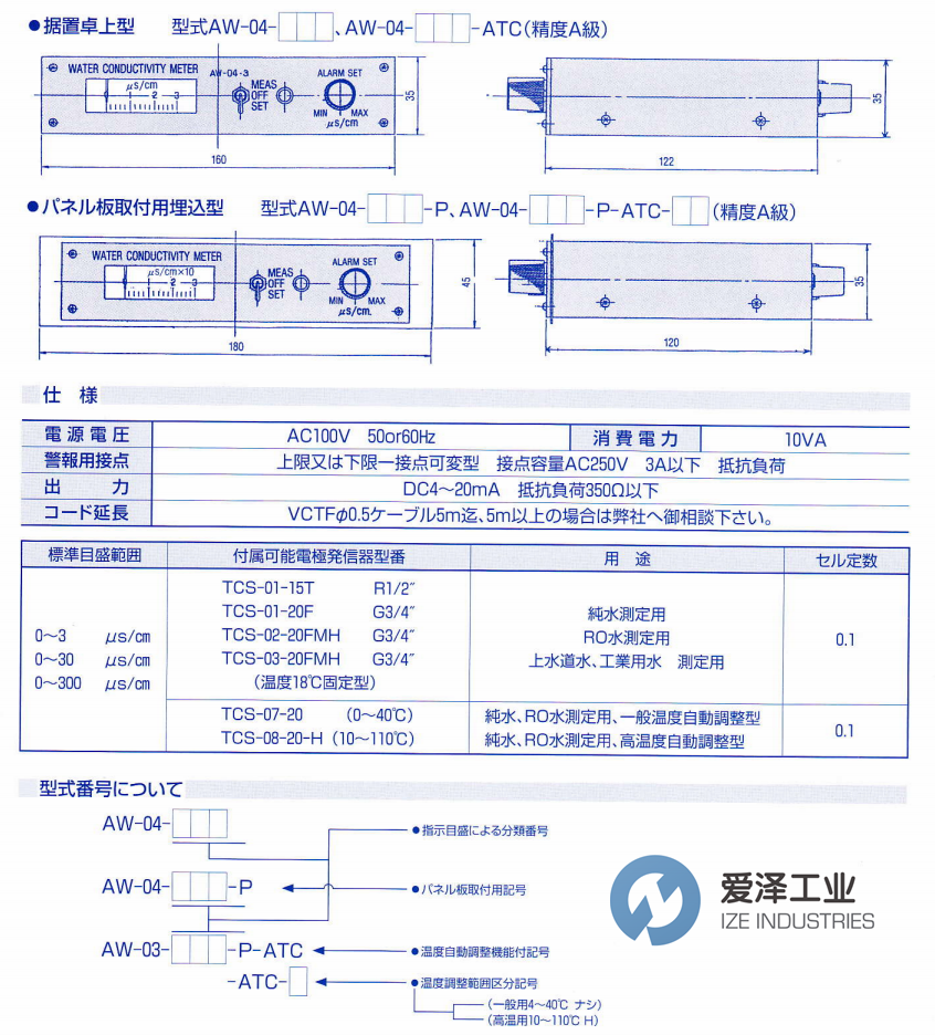 T.I.C.KEISOKUKIKOGYO电导率仪AW-04系列选型