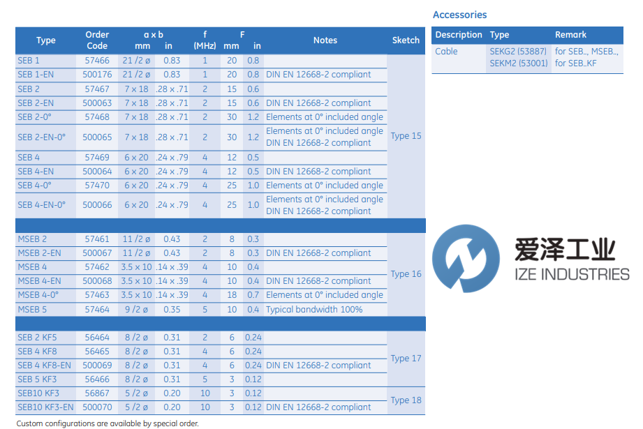 爱泽工业(IZE INDUSTRIES)特价经销、常用GE传感器型号: