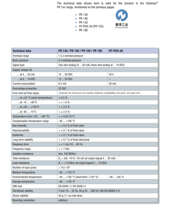 HYDROTECHNIK传感器PR140系列HYDROTECHNIK传感器PR140系列选型介绍