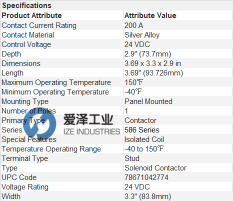 WHITE RODGERS接触器586-905产品参数及选型参考