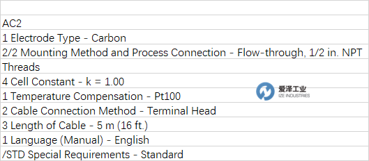 ABB电极电导率电池AC200系列AC2.1.2/2.4.1.2.3.1./STD规格及型号描述