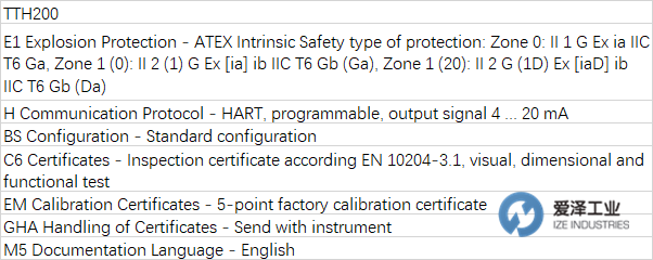 ABB 温度变送器TTH200.E1.H.BS.C6.EM.GHA.M5规格描述