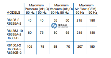 Maximum pressure, vacuum, and air flow varies for the r6 series,depending on the model(s).