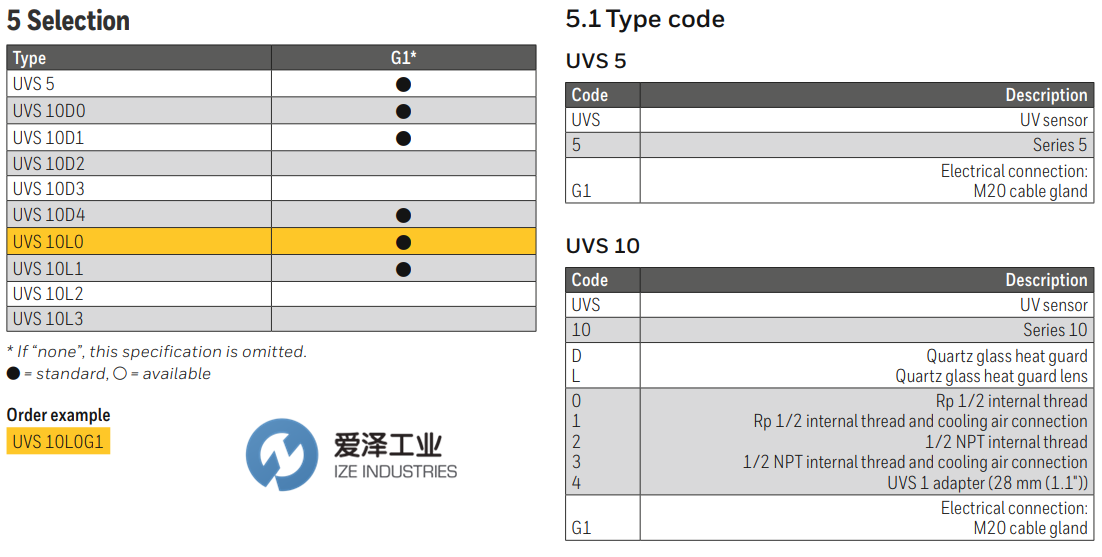 KROM SCHRODER火焰检测器UVS系列UVS10D1G1型号说明及描述
