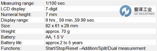 HANHART秒表STOPSTAR 2 211.1712-00技术规格