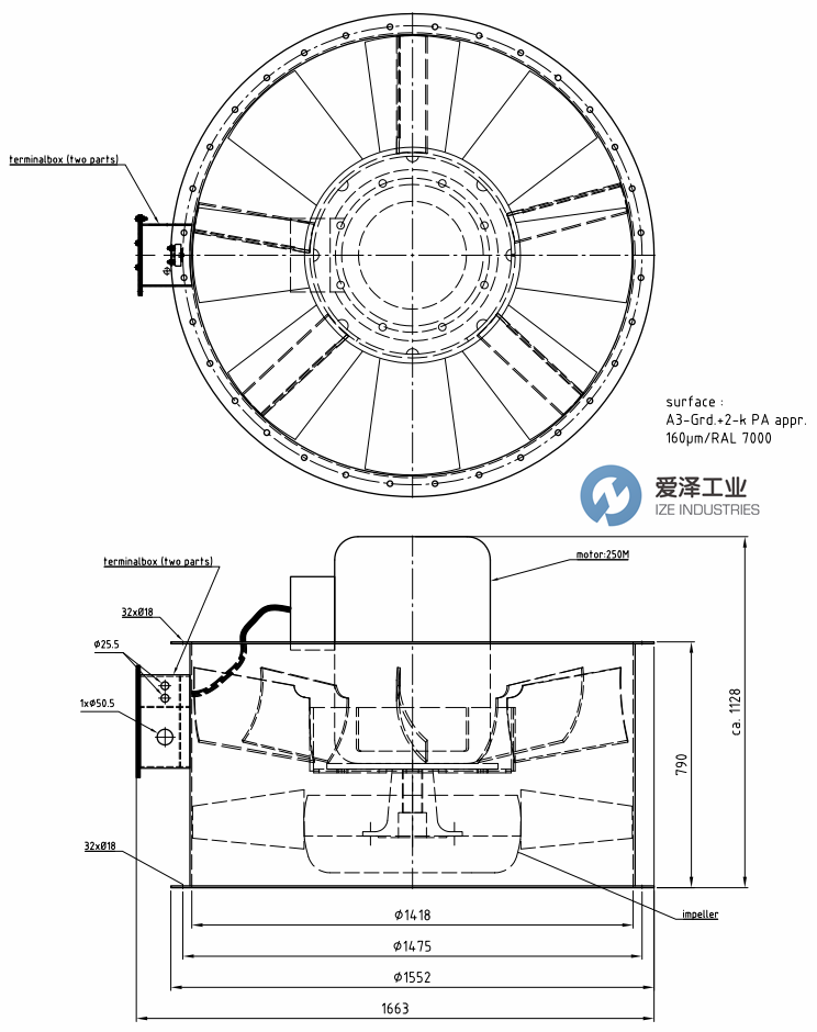 WITT&SOHN轴流风机A-M8L5/V1.11/1400/D/6技术尺寸