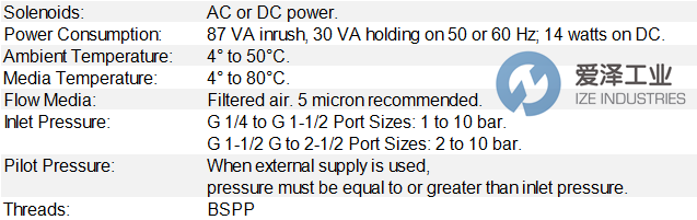ROSS阀27系列技术参数