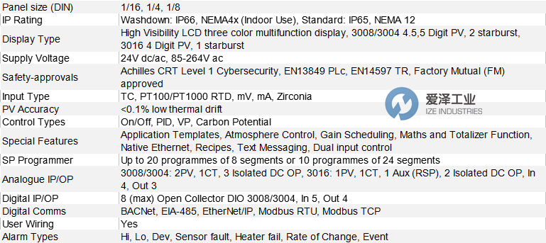 EUROTHERM控制器EPC3000系列EPC3008-1/8 DIN Controller技术参数介绍