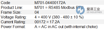 CONTROL TECHNIQUES伺服驱动器M700系列其他常用型号:CONTROL TECHNIQUES M701-03400025A