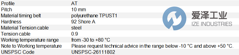BRECO同步带AT10系列50ATS15/2.940-M技术参数及介绍
