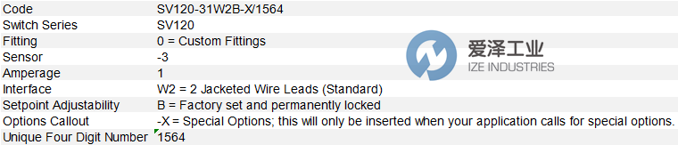 品牌:WASCO 型号:SV120-31W2B-X/1564 加工定制:否 WASCO是一家不断发展的创新型精密压力开关和传感器制造商,为全球市场中的小客户和大型OEM提供服务。