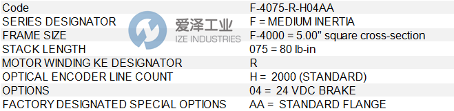 ELWOOD电机F系列F-4075-R-H04AA技术参数及选型