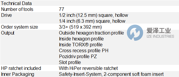 3/3+ ∙ 77 件 ∙ 3 – 32 ∙ PH1 – PH2 ∙ PZ1 – PZ2 ∙ 1/2 英寸方形 ∙ 空心 ∙ 1/4 英寸方形 ∙ 空心 ∙ 外六角牵引轮廓 ∙ 内六角轮廓 ∙ 内 TORX® 轮廓 ∙ 十字凹槽轮廓 PH ∙ Pozidriv 轮廓 PZ ∙ 槽轮廓