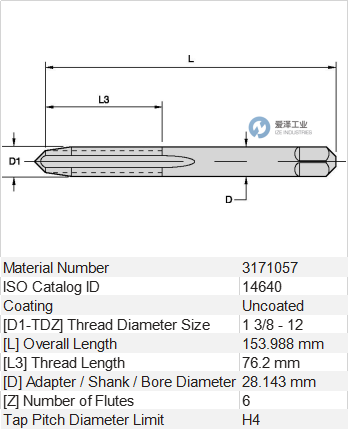 WIDIA丝锥14640技术规格