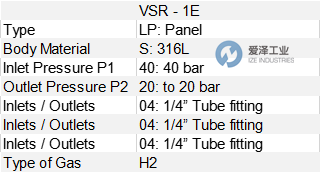 VIGOUR减压器VSR-1ELP S-40-20-1/4"-1/4-1/4"-H2技术参数