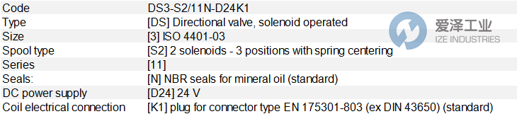 DUPLOMATIC阀DS3系列其他常用型号:DUPLOMATIC DS3-S3/11N-D24K1