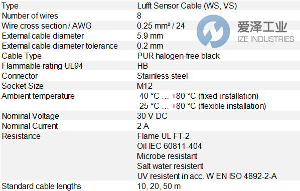 LUFFT电缆8370.UKAB系列8370.UKAB10技术参数及介绍