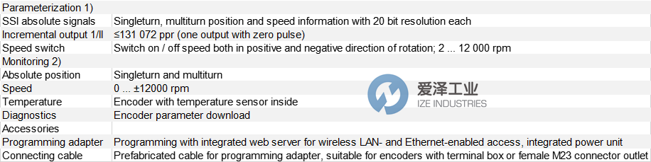 The intelligent encoders deliver position and signal information for Speed control in harsh environments. What’s new: configuration and monitoring by wireless LAN programming adapter which allows customized settings and on-site optimization of device parameters.