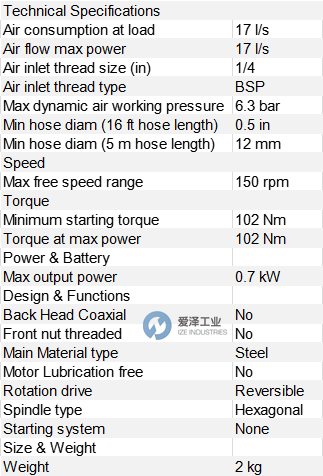 标准气动叶片马达 2H410-150-ATEX 设计紧凑,重量轻,具有六角轴主轴。适用于手持式机器或任何工业设备的制造。这款可逆空气马达*大输出功率为660瓦(0.89马力),*大扭矩为204牛米(75.2英尺磅),空转速度为150转/分钟。