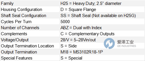 BEI IDEACOD编码器H25D系列其他常见型号: